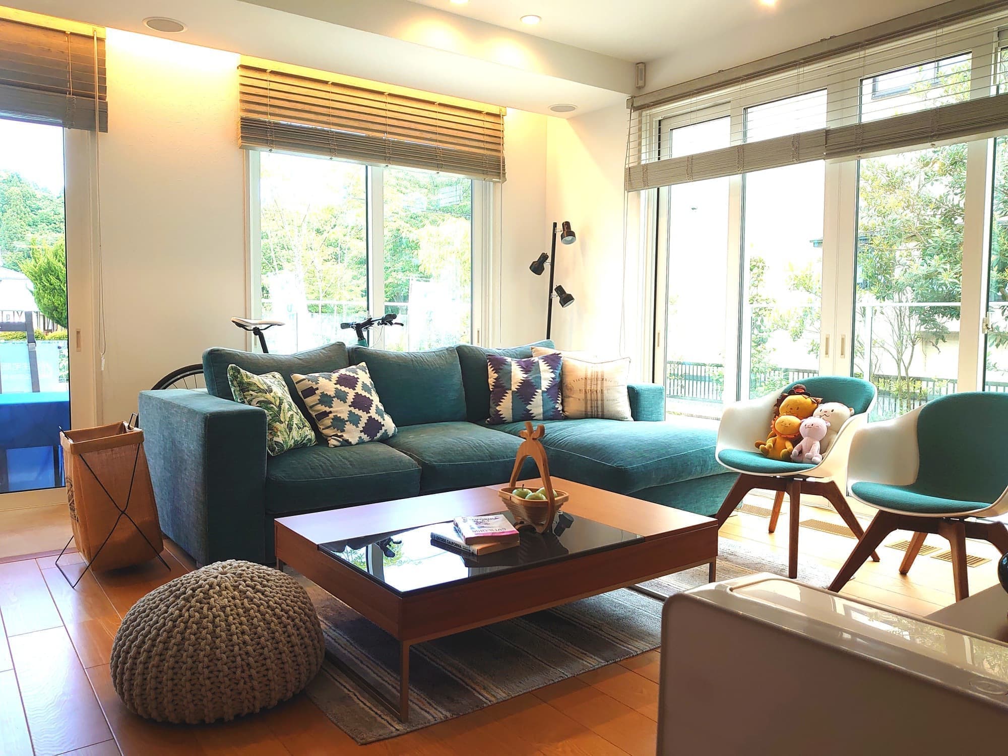 レンタル品詳細:ダイニングセット・ソファ・センターテーブル・ラグ・インテリアグリーン・小物一式